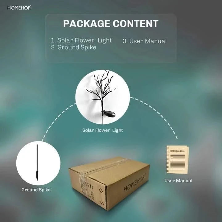 outdoor home decor garden light, which features eight LEDs with two lighting modes: continuous illumination or blinking, catering to various decorative lighting preferences. We’ve upgraded the structure to ensure the branches of these solar-powered garden lights spread out elegantly, avoiding clumping. This enhancement enhances the overall appearance when placed in flower pots, flowerbeds, gardens, yards, patios, or pathways.