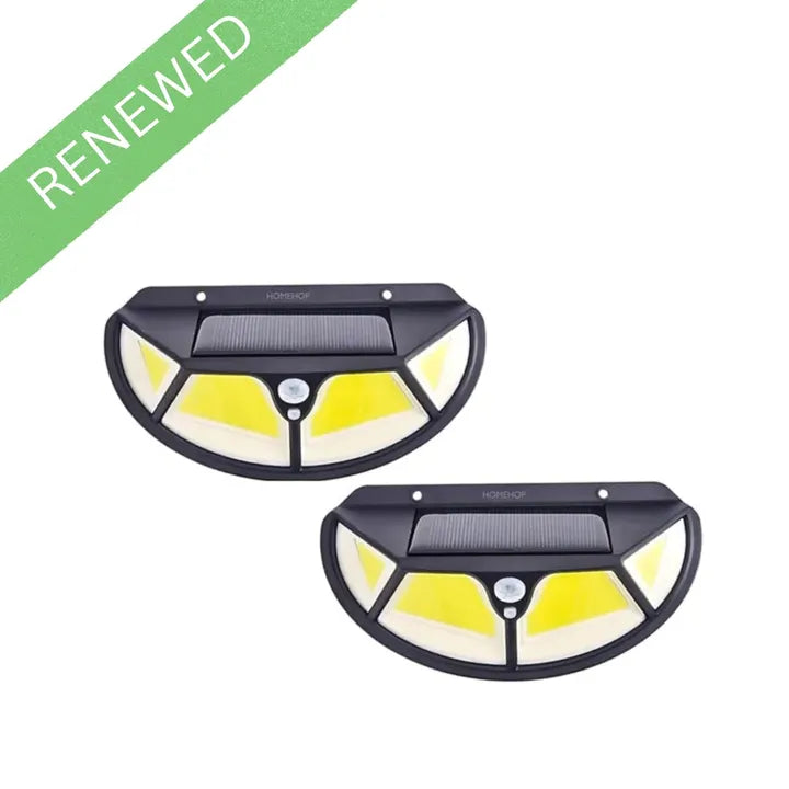 Motion Sensor Solar Outdoor COB lights for Home Security has 5.5V/1W Solar Panel that is charged by 3.7V /1200 mAh Li-ion Battery to light up 122 COB LEDs.The solar motion sensor light built-in PIR sensor. It will automatically turn on when any motion is detected. The motion detected range of the LED Solar light is 16-26 ft.