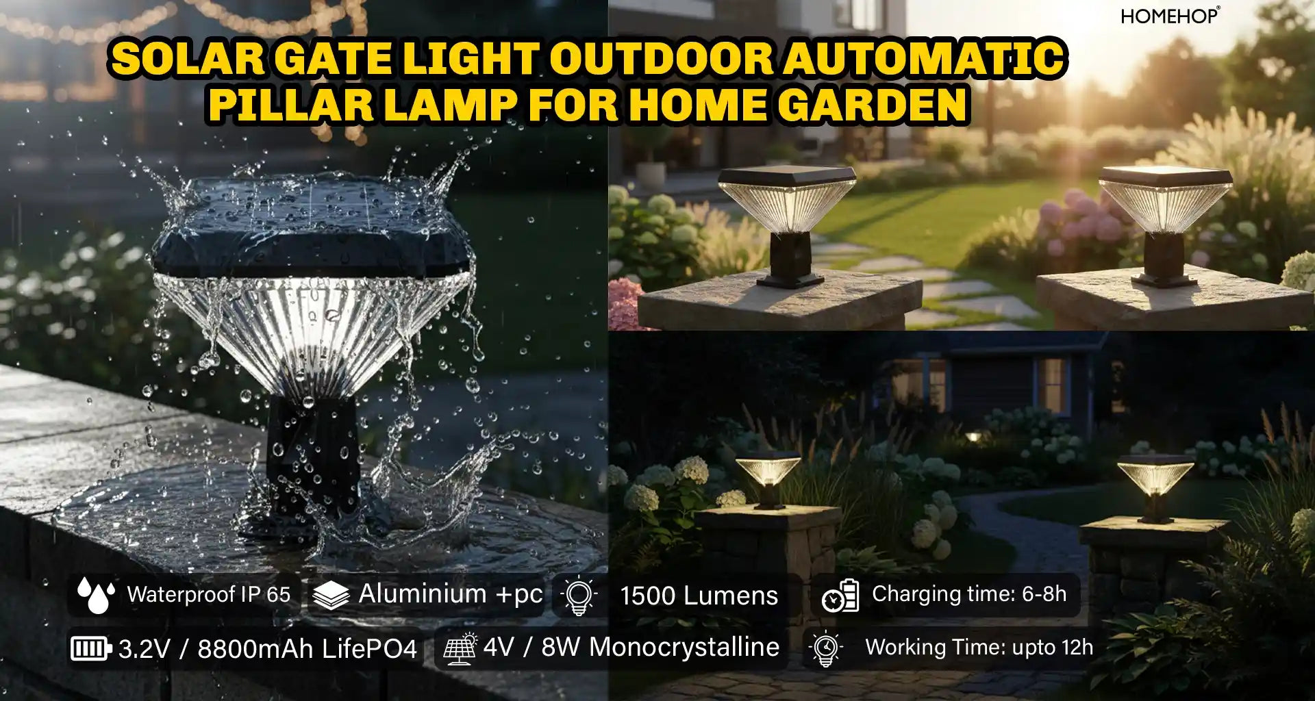 FEATURES OF HOMEHOP SOLAR GATE LIGHTS OUTDOOR DIAMOND DECORATIVE PILLAR LAMP FOR HOME GARDEN