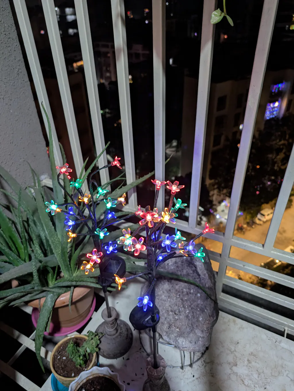 The solar lights are very beautiful. The branch of lighted flowers looks very exquisite when lighted up. The fact that it runs on solar energy without electricity is a major plus factor.