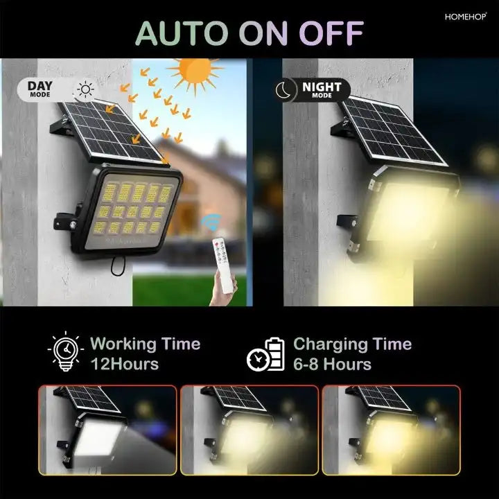 The offers over 12 hours of continuous lighting in auto mode on a full charging, provides reliable overnight illumination—great for waterproof outdoor flood lights in residential or commercial areas.